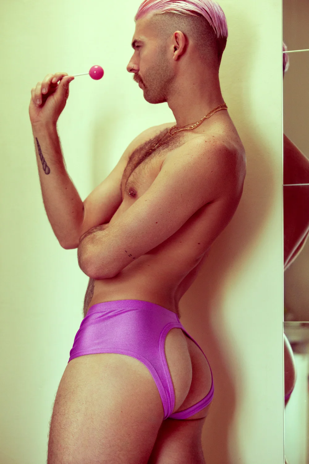 High Gloss Powder Pink Cut-Out Thong Bodysuit