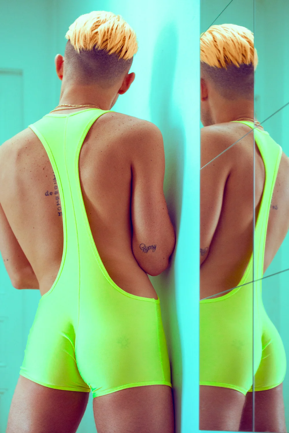 Lime Punch Front-Tie Mega Cut-Out Thong Bodysuit