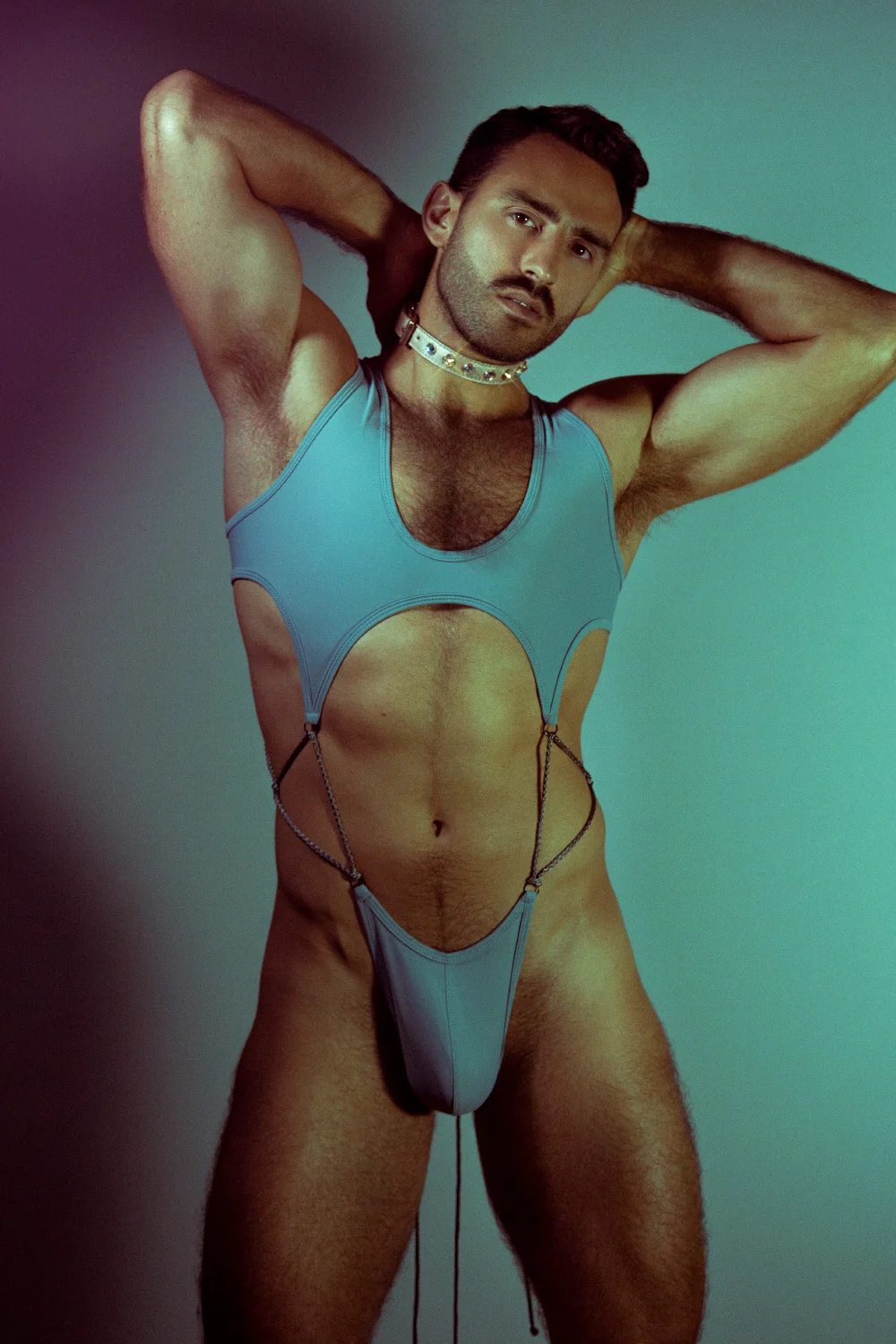 Azure Front-Tie Mega Cut-Out Thong Bodysuit